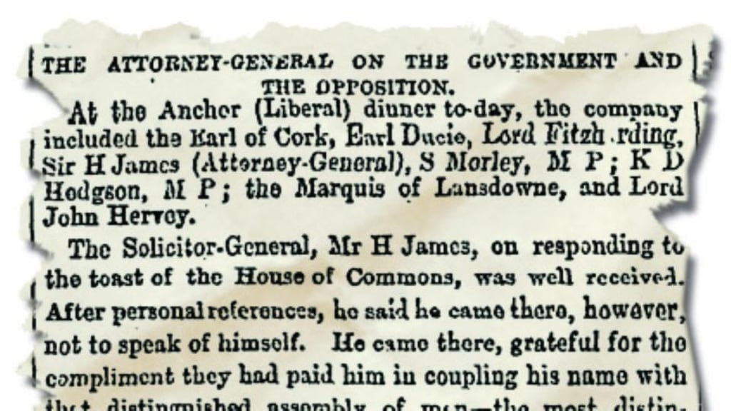 Now, let them suppose, though he did not see it was very probable, that this young gentleman he had mentioned should become comfortably settled in life, and that at No 10 Downing street they should read his address in a very short time – (laughter) – what did they suppose would happen when the representatives of these numerous flirtations should be found knocking at the door, and that when they were asked to fulfil the promises they so lightly made, what answer would they give? (Applause.)