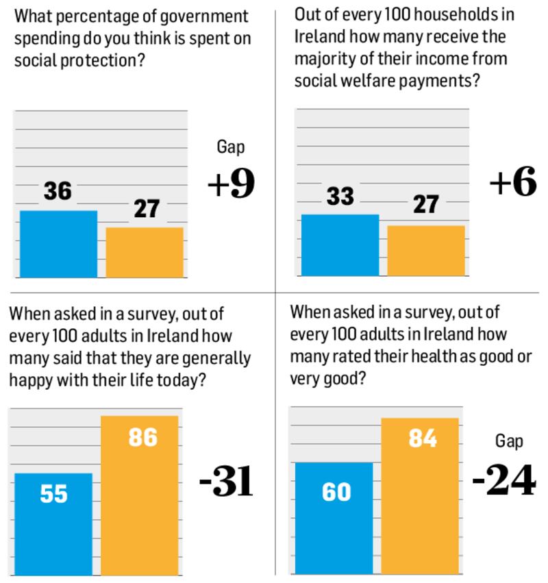 And when asked how many of every 100 households receive the majority of their income from social welfare payments, the average answer was 35.2 per cent. The the actual figure is 27 per cent.