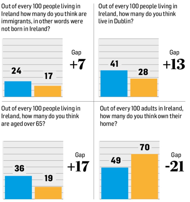 They also believe 41 per cent of Irish people live in Dublin (28.4 per cent actually live in the capital), a perception that may be amplifying the rural-urban divide.