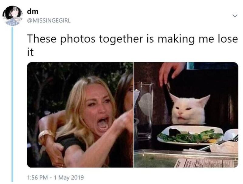 It also had its use for other, more literal interactions, such as, “Me accusing my cat of cuddling with other people when I come home after bottomless brunch”. Even in 2019, sometimes a cat meme, is just a cat meme.