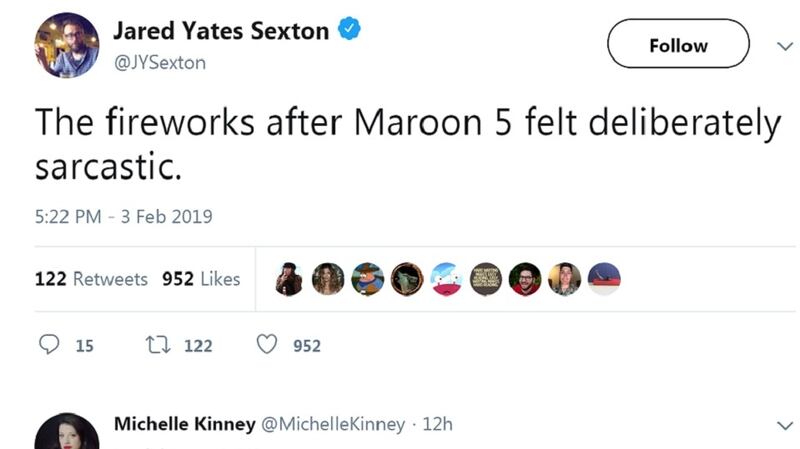 Enter Maroon 5. The pop-rock septet were announced as the headliners in January and immediately faced backlash for their decision to perform at the event in light of the NFL’s pushing back against players protesting the national anthem.