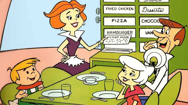 Like the book Sapiens by Yuval Harari, these two cartoon series document the ascent of man from primitive Stone-Age times, when cars were foot powered and you could mix cement in the mouth of a pelican without killing it, to a far future of flying cars, robot butlers, jobs for life, heteronormative family groupings, Google Glass and talking dogs.