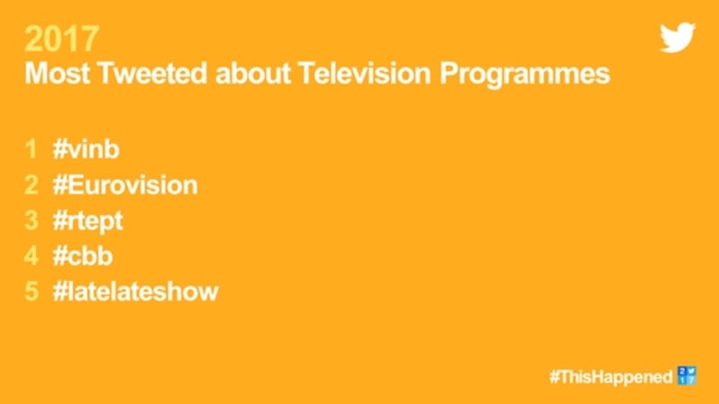 The Twitter review also showed that while Vincent Browne may have retired from our TV screens, his influence is still there snarling and growling from the shadows. #VinB rounded off his retirement year by giving him the most tweeted about TV show of 2017, with some Twitter users still refusing to bow to the inevitable and begging for an encore.