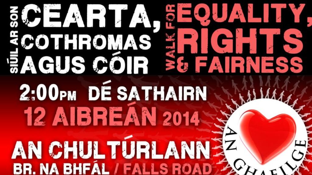 The march will leave Cultúrlann MacAdam-Ó Fiaich, Falls Road, Saturday 12 April at 2pm and go to Belfast city centre.