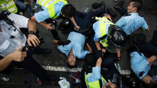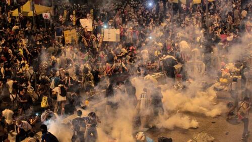 Hong Kong police use tear gas to try and disperse protestors