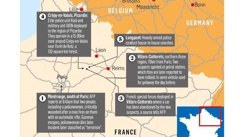 Hunt for Charlie Hebdo killers intensifies as police converge on forest northeast of Paris