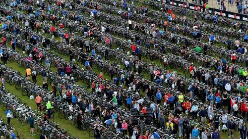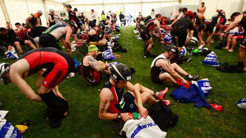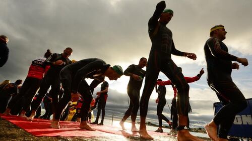 Ironman 70.3 winner Denis Chevrot crosses finish line