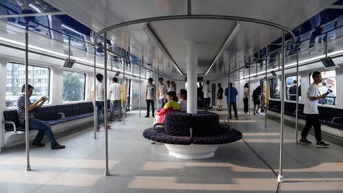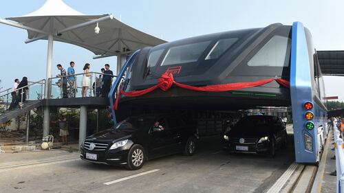 China’s big blue bus takes passengers on test drive