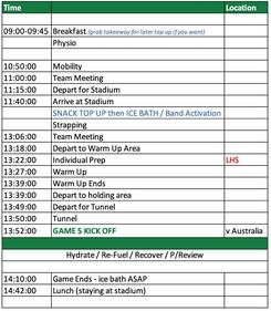 Individual job spec and team schedules for the Irish Women's Sevens rugby team . . .