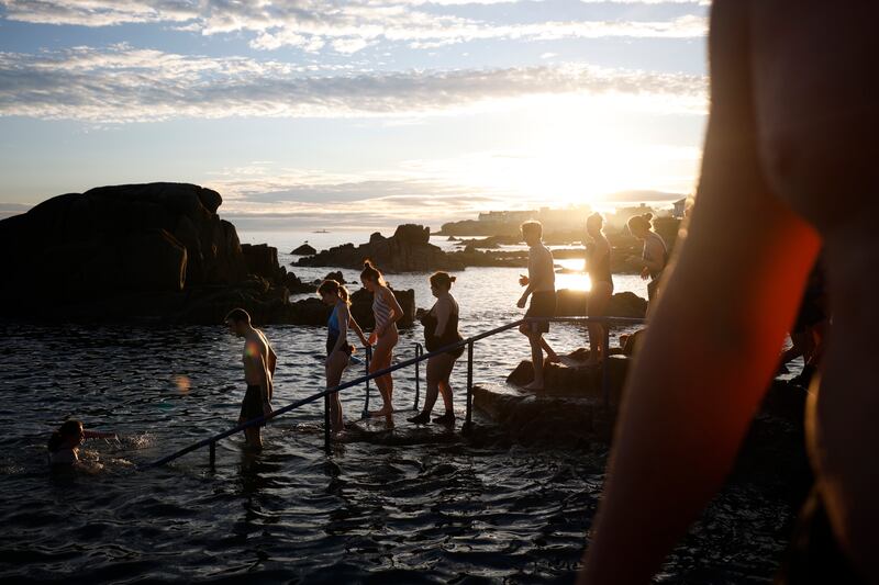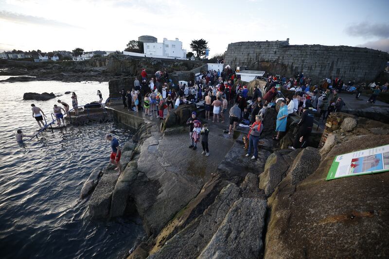 “There’s a fella cooking sausages over here, lads,” called one woman to her friends as she climbed the concourse from the sea back to the main road. “I hope there’s an Irish coffee waiting for me when I get out,” said another man.