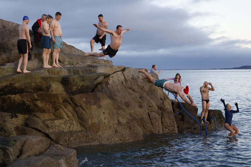There were tailbacks as far back as Monkstown on Wednesday morning as hundreds of people descended on the Forty Foot in Sandycove, Co Dublin, for the annual Christmas Day swim.
