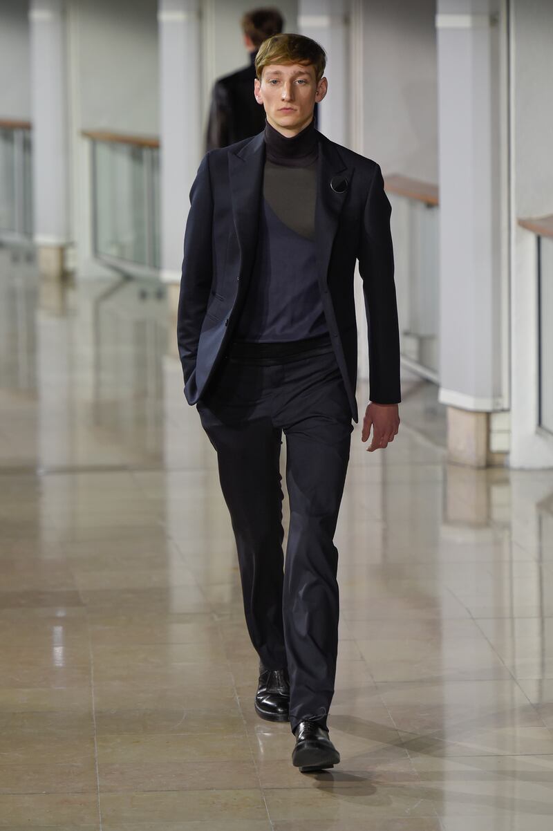 "Hermes bought one of my paintings and we worked together on colour variations to make a series of scarves called Squeeze." The Squeeze comes in a series of seven colourways that are silkscreen printed in Lyon. The Squeeze has also tightened its grip on Hermes menswear where the colour choices in darker tones were made by Véronique Nichanian, artistic director of the Men's Universe who reworked the colouration to create new variations. It has been used several times in the AW menswear collection, in a blouson in glossy calfskin in carbon tones and in silk or cotton shirts based around colours like celadon, Prussian blue and bronze.