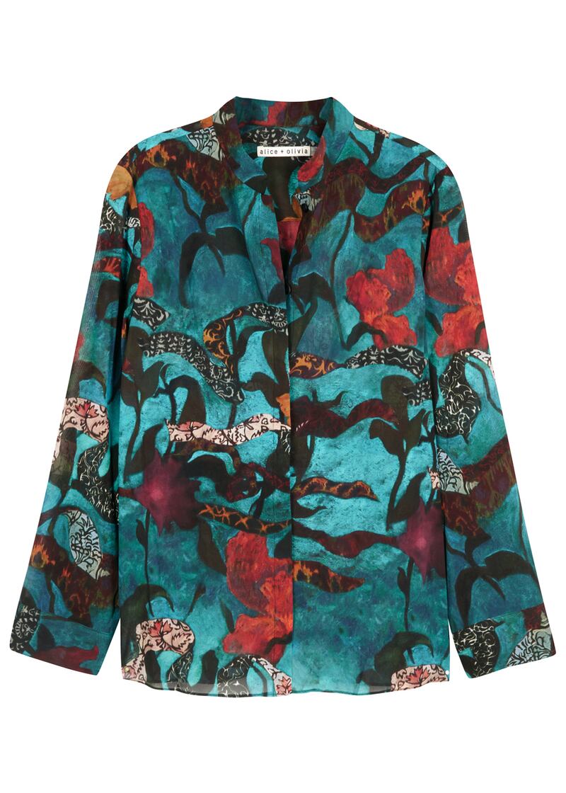 Wearing print makes it easy to introduce colour to your wardrobe, as you don’t have to commit too much to any one shade. This Alice and Olivia blouse would look great over jeans.