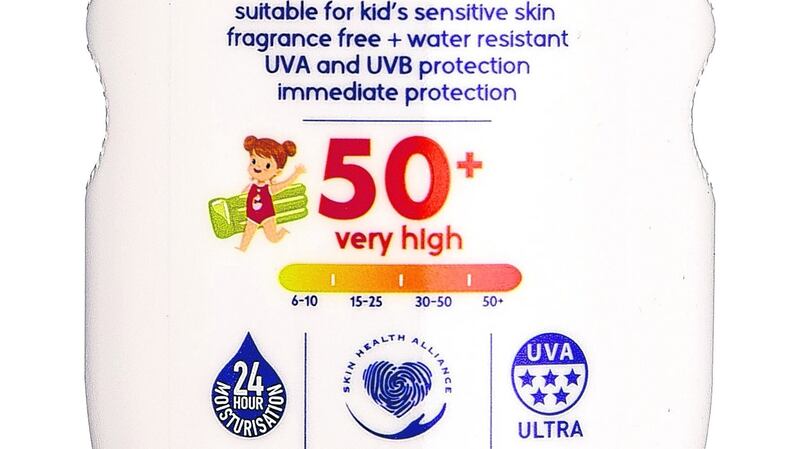 Aldi Lacura SPF 50+ Baby Lotion (€2.99 at Aldi stores nationwide) is affordable and perfect for babies from six months to three years, after which point you can use a standard children's SPF50. The same Lacura range has an Extra Sensitive SPF 50+ Kids Spray (€3.99) that is easy to apply to unwilling little people.