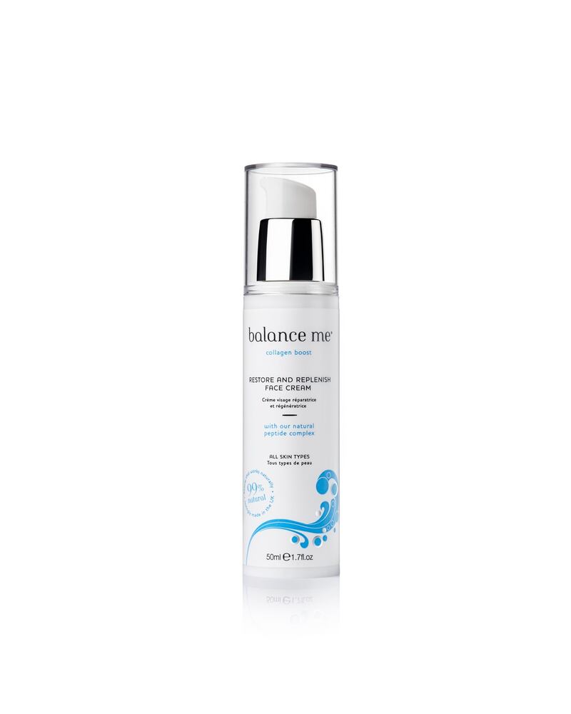 British natural skincare brand Balance Me, founded by three sisters 10 years ago, expanded its range this summer with two new products: the Collagen Boost Restore & Replenish Cream Cleanser and Face Cream (Debenhams, feelunique.com).