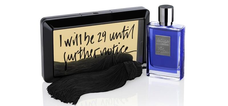 By Kilian, Moonlight in Heaven fragrance, with 'I will be 29 until further notice' clutch (€250)