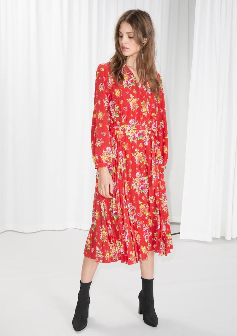The do-it-all-dress hasn’t gone unnoticed by the street-style style set either, with show goers across the globe giving sartorial masterclasses in how to wear the hero dress. Dressing it down with dad trainers for fashion brownie points or layering it over jeans for a very chic and chill-battling combination. Not forgetting, that a bright, statement-making midi has all the qualities that would want in a street-style garment: the silhouette is forgiving, the print pops when photographed and it doesn’t require much accessorising.
