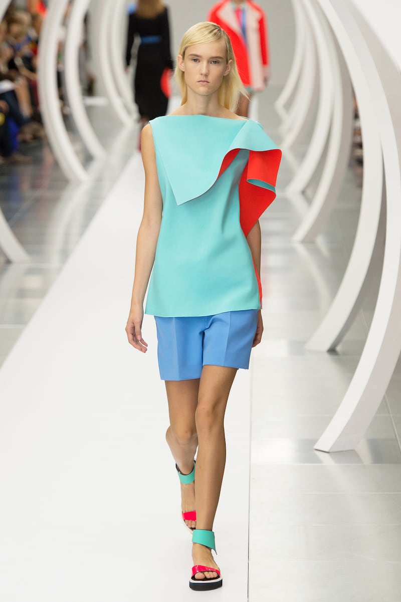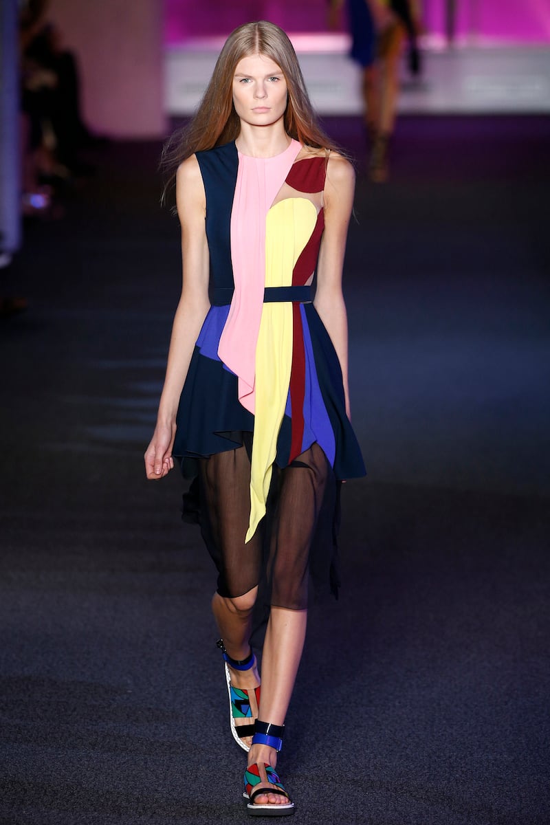 The asymmetric colour blocking emerging on the catwalks of Spring Summer is reminiscent of 70s film posters mixed with manga cartoons. The colours are primary, clashing and bright in blobs and squares placed thoughtfully. Trippy.