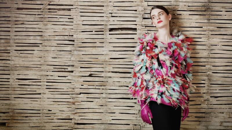 “They love colour but are very fussy about tones, because not all of them suit Irish skins. You need bright shades,” he says. One high voltage item from the collection is a multi-coloured fluffy feather jacket that comprises all the shades in his autumn/winter spectrum.