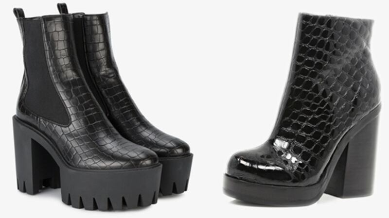 Spice up your life in these (left) black Stella McCartney ‘Monster’ faux leather boots (€870) or be a 1990s grunge girl in these chunky ankle boots on sale at rivierisland.com for €24 (while stocks last).