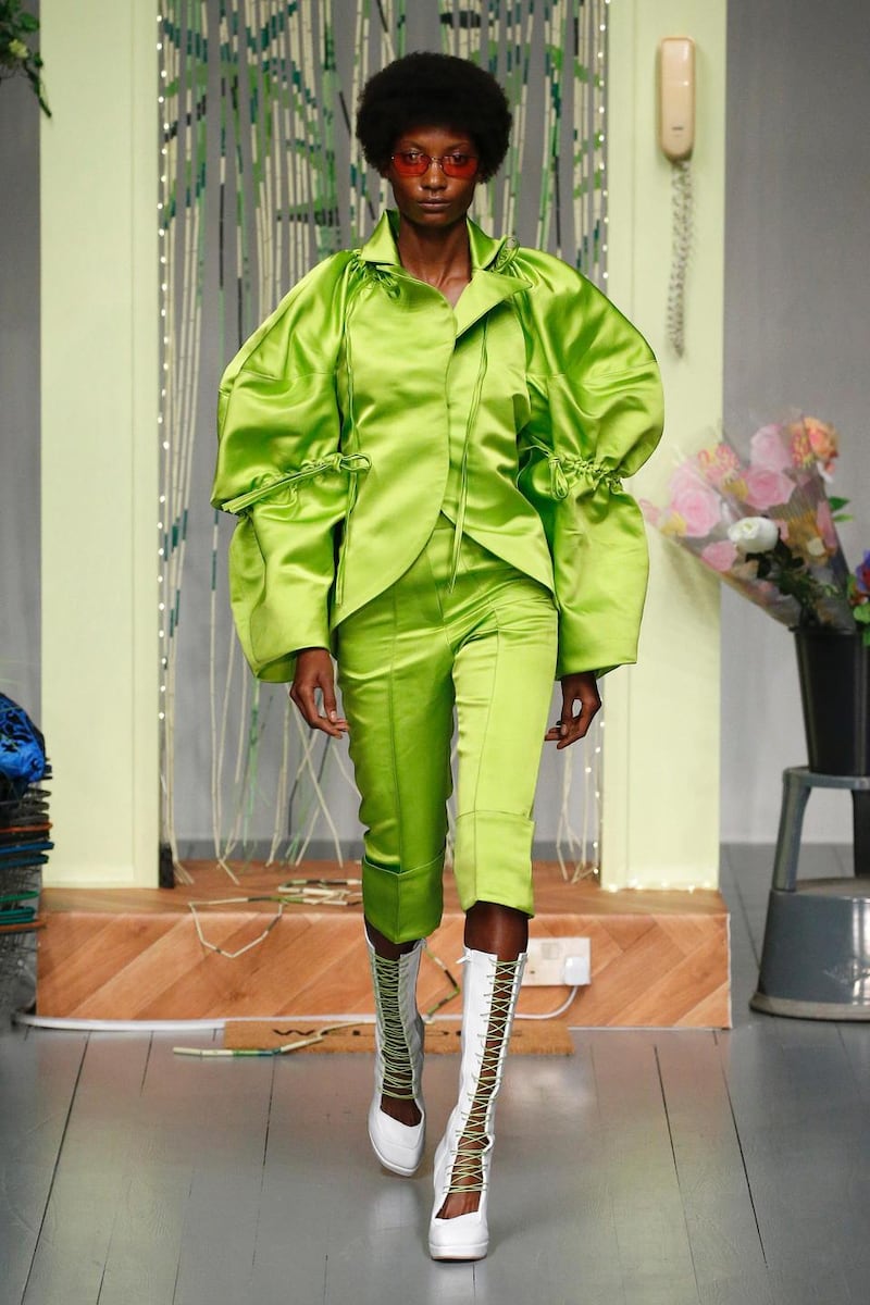 Bold colour, daring shapes, graphic prints and outstanding workmanship marked Richard Malone's spring-summer 2019 collection, which opened London Fashion Week this morning at Somerset House, the first of more than 80 shows on the official calendar.