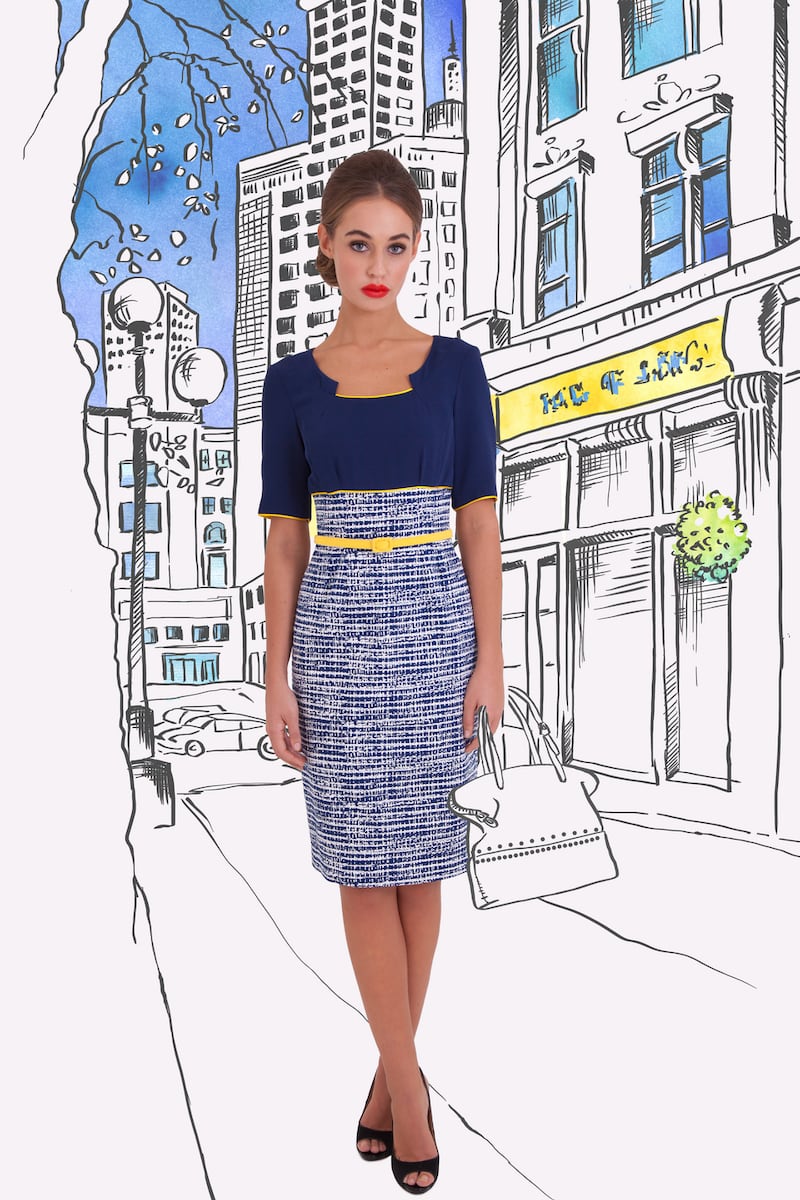 This collection is full of colour and brio and aimed at the 30- to 35-plus age group. “Ladies in the summer tend to buy occasion wear – for weddings, for the races – and mothers of the bride who don’t want the typical mother-of-the-bride outfit, as well as those working in the corporate area who want a dress for boardroom meetings when they want to look their best.”