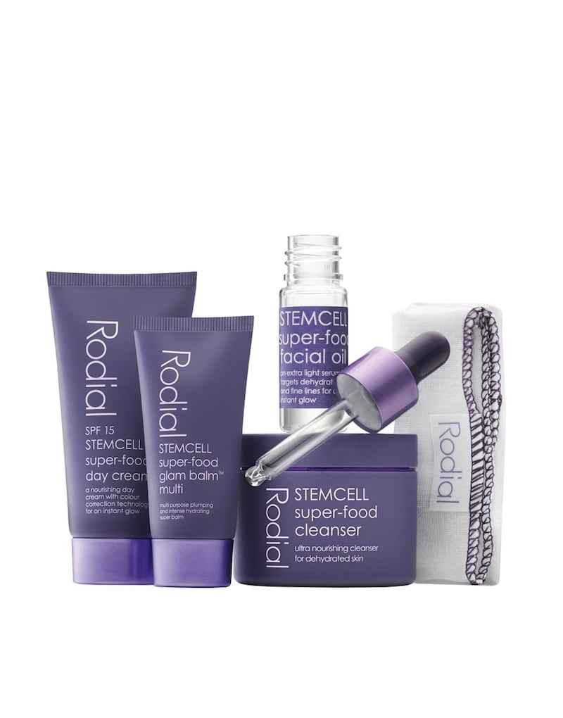 Rodial Stemcell super-food discovery kit (€30 from rodial.co.uk) I picked up this box of tricks on an Aer Lingus flight recently, and it is my new favourite thing. It includes four products packed with nourishing ingredients such as omega oils and anti-oxidants, and the cleansing balm is perfect for dry skin.