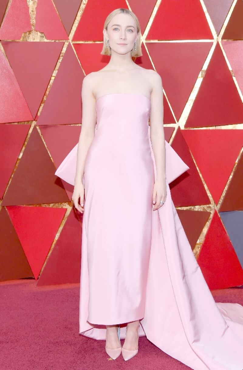 Scooping the sartorial award but still keeping it neutral was Saoirse Ronan in a strapless custom Calvin Klein in a powdery shade of pink complete with an oversized bow, that was perfectly pared with a sleek and modern bob and minimalist make-up bringing a newfound, understated ease to the Oscars.