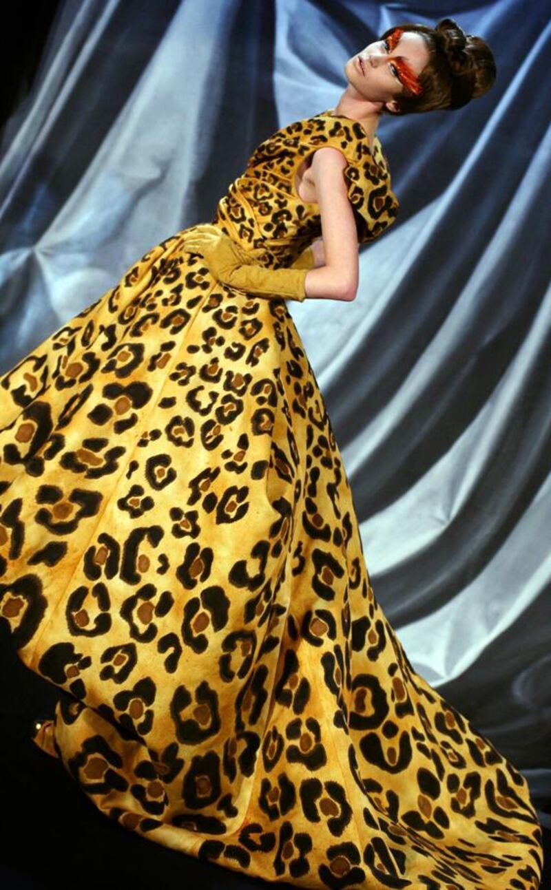 With a silhouette inspired by Singer Sargent’s provocative portrait of Madame X (Gautreau), John Galliano for Dior Haute Couture in 2008 added a stylised leopard print on duchesse satin.