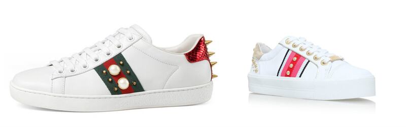 Strut, don't run, in these embroidered leather trainers for €550 from Gucci (left) or be a stud in these LAX trainers for €185 from Carvela Kurt Geiger. DMcM