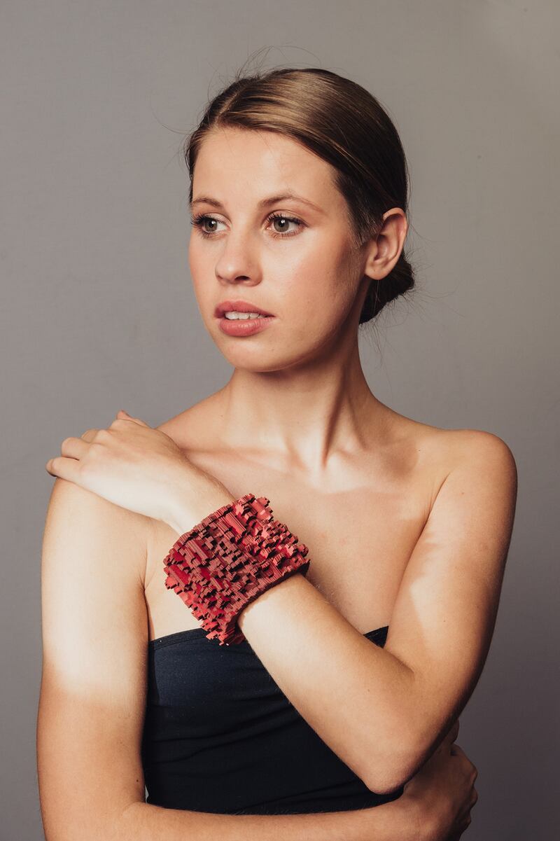 The family of Genevieve Howard is also an inspiration for her work. Her parents are composers and her musical background informs her approach, turning graphic notations from musical scores into wearable forms, laser cut with paper and then layered together.