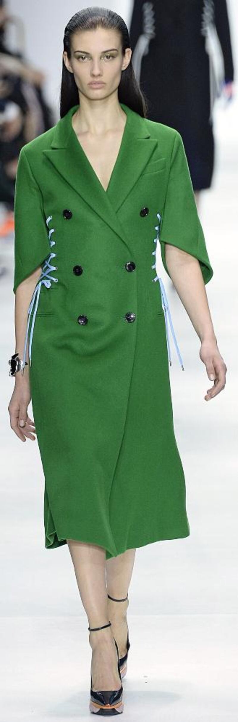 At Paris fashion week, Christian Dior revealed blocks of pure green vibrancy for autumn/winter including a startling floor-length gown and a double-breasted buttoned dress with a definite debt to Aer Lingus livery. In marshy, safe, olive greens, just when we’d seen one too many of the khaki parkas that everyone seems to own, Stella McCartney and Saint Laurent bring out more. Sandro have gone native with the colour for spring, with drop-waist mini “swing” skirts in lush grass green and pleated minis in a devilish reptile print.