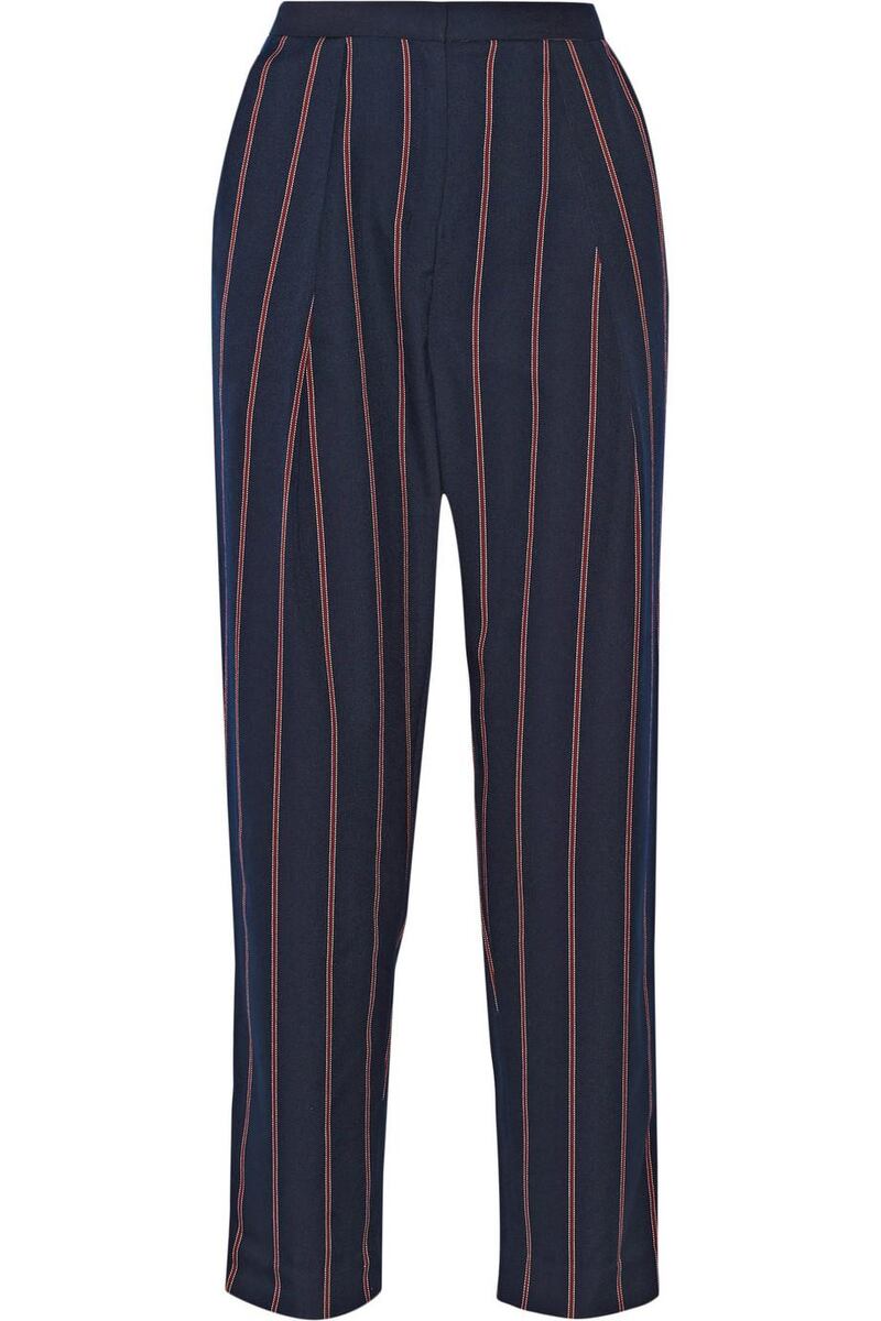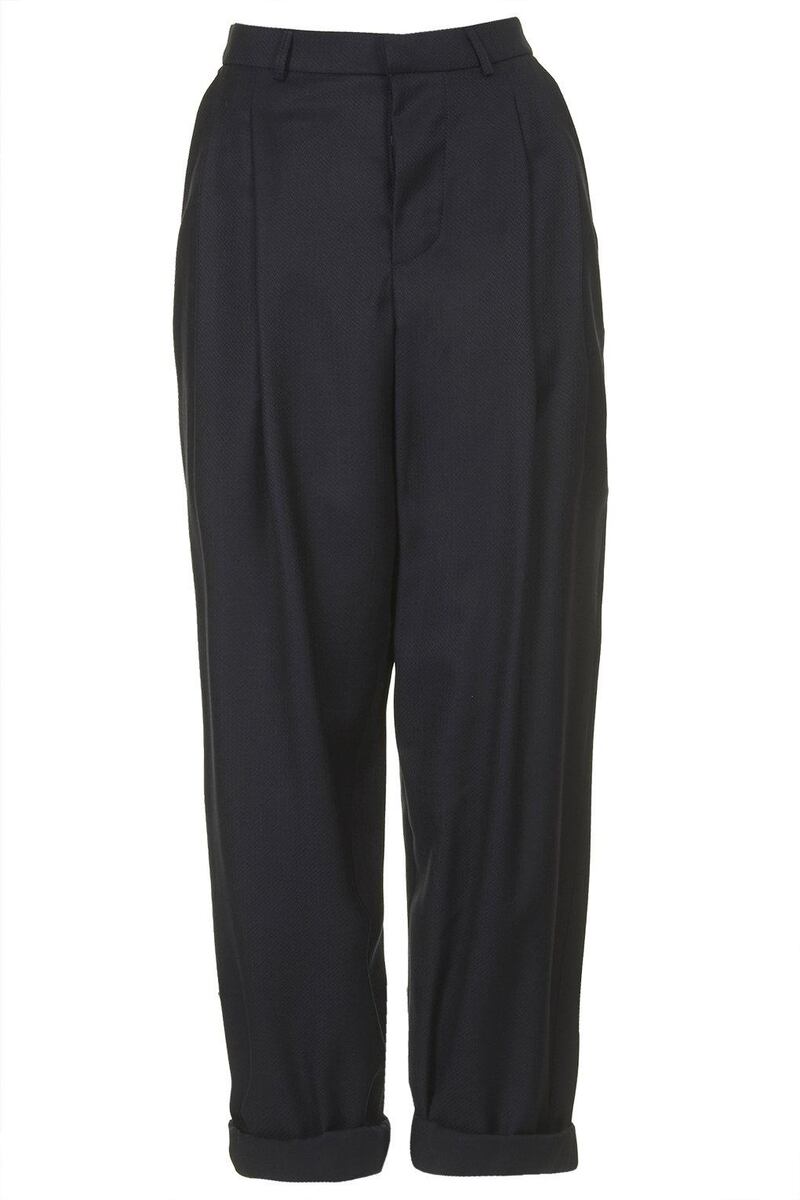 Instead, go for wide-legged trousers with a pulled-in waist. Pair them with a crisp white shirt to avoid looking too much like an old-timey hobo. Think Marlene Dietrich, not Charlie Chaplin.