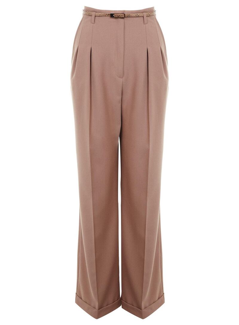 (L-R) Twill trousers by Melene Birger, €240. Camel high-waist trousers, €50 from Miss Selfridge. Wool trousers by Topshop, €110