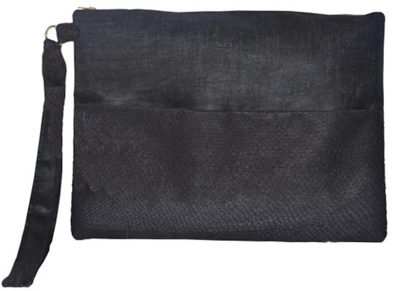 (L-R) People Tree handmade necklace, £36. We Are Islanders black laptop clutch, €125. Toms slip-on shoes, €45 from Schuh