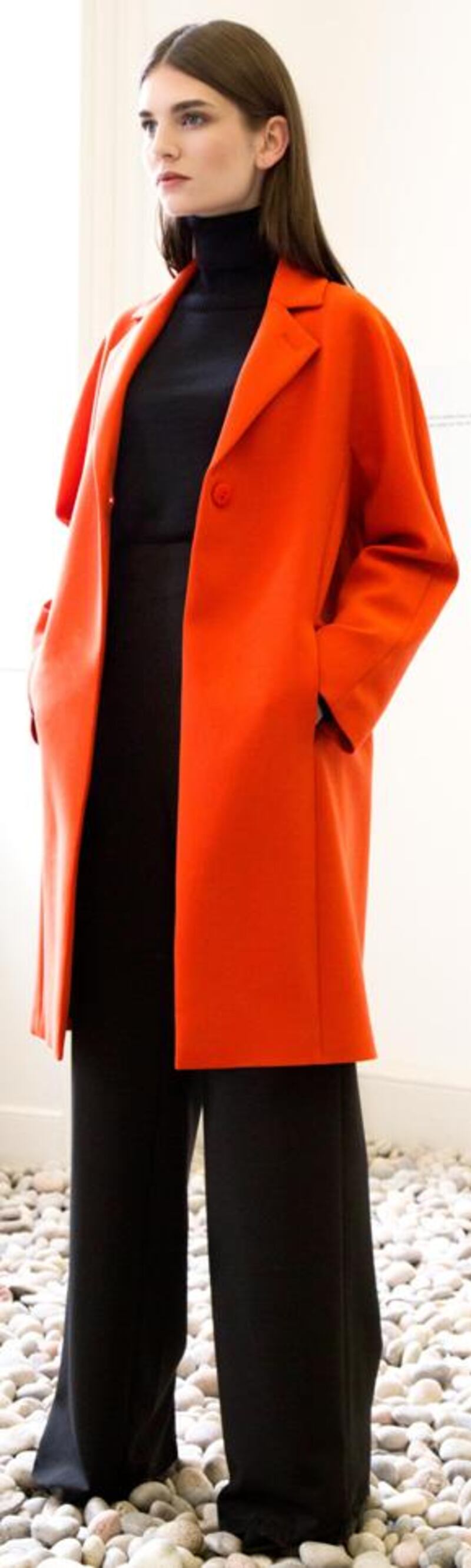 Colours are predictable: camel and navy with the added relish of tomato. He describes it as minimal and clean and says, with his usual modesty, “I do what I do and try and do it better every season”.