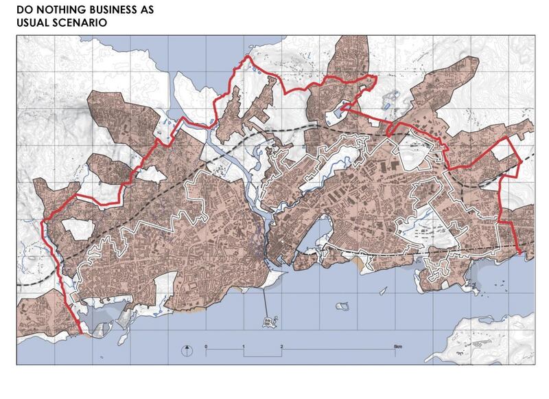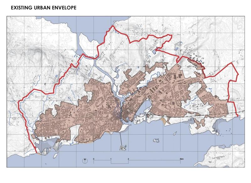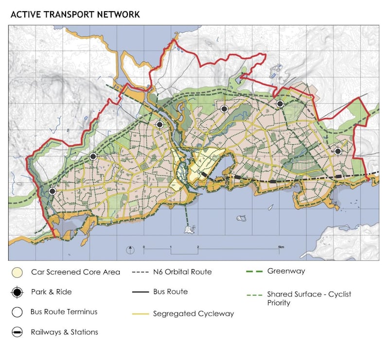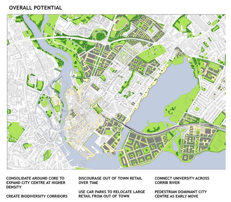 The fundamental idea is to concentrate future growth within a new orbital road around the city that would set a limit on its outer development. (An Bord Pleanála has approved a ring road, but the plan is currently the subject of High Court judicial review proceedings.)