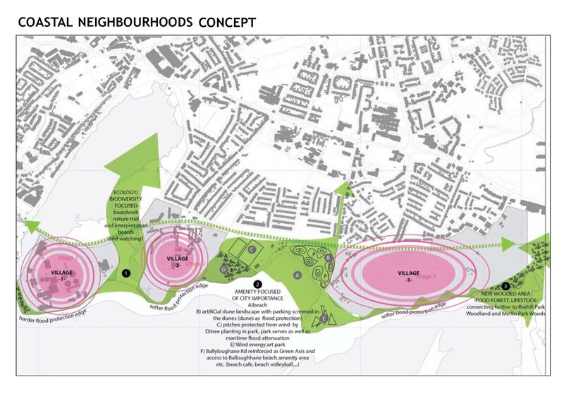 The group also believes that three new villages can be built on the city’s eastern coastline, benefitting from appealing views of Galway Bay and using the proximity to the Dublin rail line as an obvious link to the urban centre.