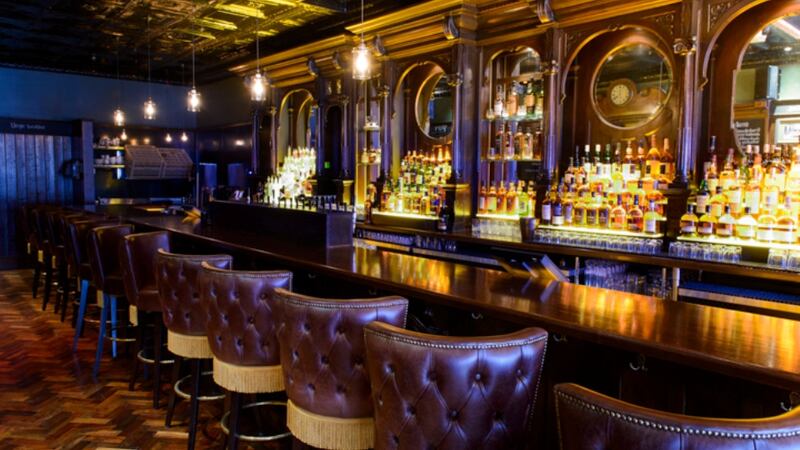 Behind the bar is a slightly charred statue of St Patrick rescued from a burning building on Patrick Street in Cork in 1920. The theatre to the right of the bar has panelling and columns from the Theatre Royal on Hawkins Street in Dublin. The cabinets in the Whiskey Room come from Madigan’s watchmaker and jeweller, on Ellis Quay in Dublin, and the panelling from a Royal Bank of Ireland branch on Baggot Street.