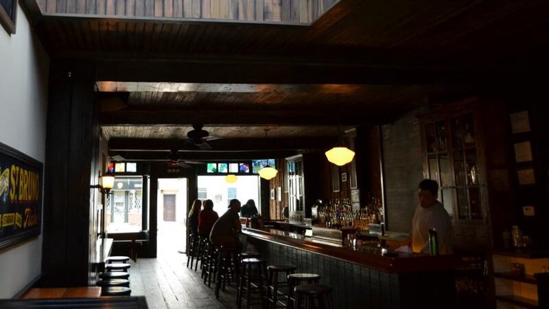 And then, suddenly, there was this beautiful bar, all rich, smooth wood, and art-deco sconces, and little stained-glass murals, and shadows and tealights flickering in the booths.