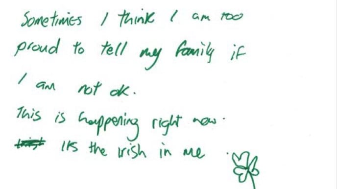 Secret 1: It's okay to talk about how you feel. Sometimes we forget that it is more than okay to talk about our feelings. If you're feeling anxious or you're experiencing low mood for an extended period of time you don't have to "just get on with it". With a quarter of London cailíní experiencing similar feelings, it could be anybody - your sister, your friend, your mammy. I know, she always seems like she has it together, but sometimes even the rock of the family needs support.