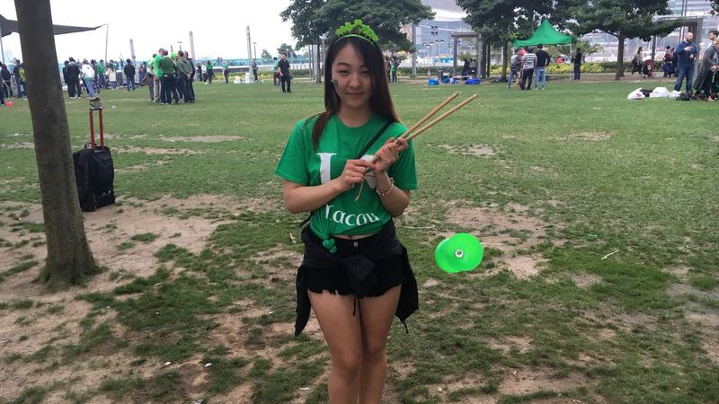 Hundreds of Irish gathered in Tamar Park on the waterfront in Hong Kong on Sunday, overlooked by the imposing government buildings, for this year's St Patrick's Day celebrations.