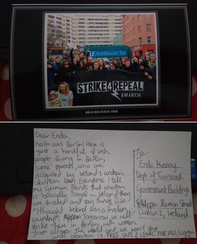 Enda Kenny’s inbox has been filling up in the run up to International Women’s Day with postcards sent from cities including Prague, Toronto, London and Berlin, calling on the Taoiseach to repeal the eighth amendment to the Irish Constitution and introduce free and legal access to abortion in Ireland. The eighth amendment was introduced in a 1983 referendum, and effectively bans abortion in Ireland.