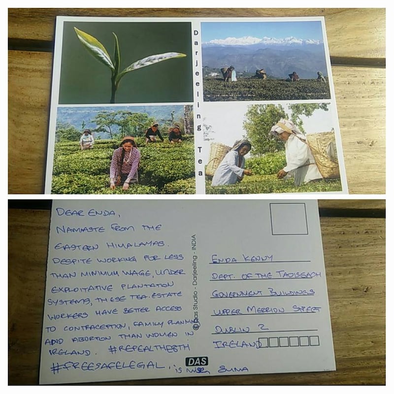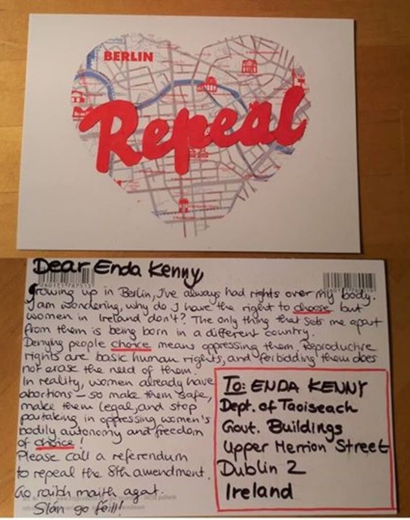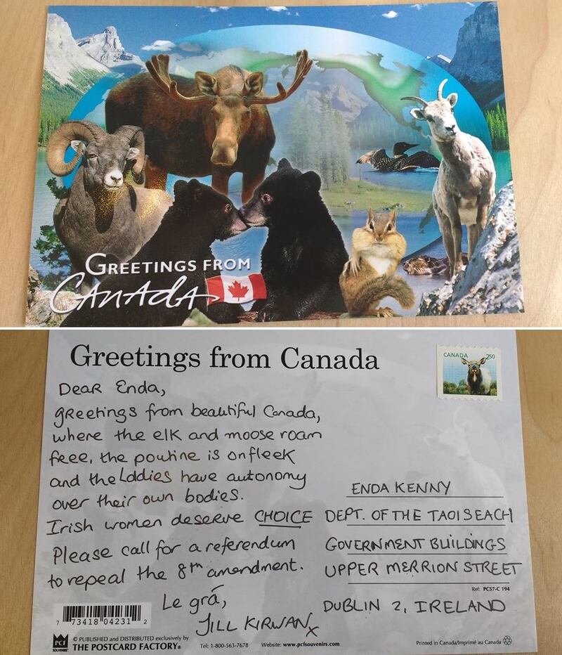 “We are asking Irish people abroad, and anyone who supports a repeal of the eighth amendment, to bombard an Taoiseach with the gaudiest, naffest postcards available… we want him to know that the world is watching.”