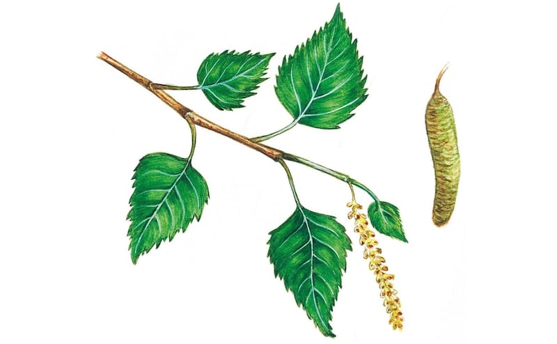 Tagann bláthanna bándearga nó bána ina dhiaidh sin. Mealltar feithidí chucu ar thóir pailin agus neachtair agus is mar sin a dhéanann siad iad a phailniú. Nochtann na silíní inite dúdhearga sa samhradh agus itheann an cat crainn agus a lán éan iad. Tagann dath órga ar na duilleoga san fhómhair sula dtiteann siad. Airde: suas le 30m