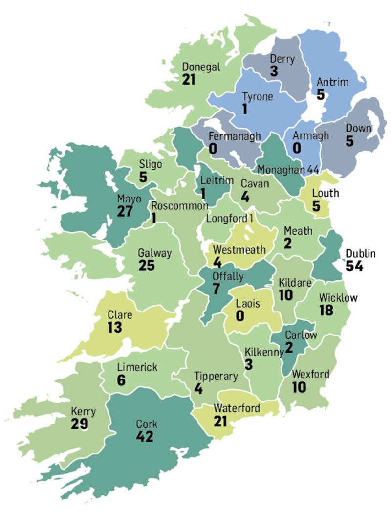 There have been 373 entries so far for the 32-county competition, with only three counties – Armagh, Fermanagh and Laois – unrepresented as yet. The highest number of nominations comes from Co Dublin, with 54, followed by Monaghan at 44 and Cork at 42.