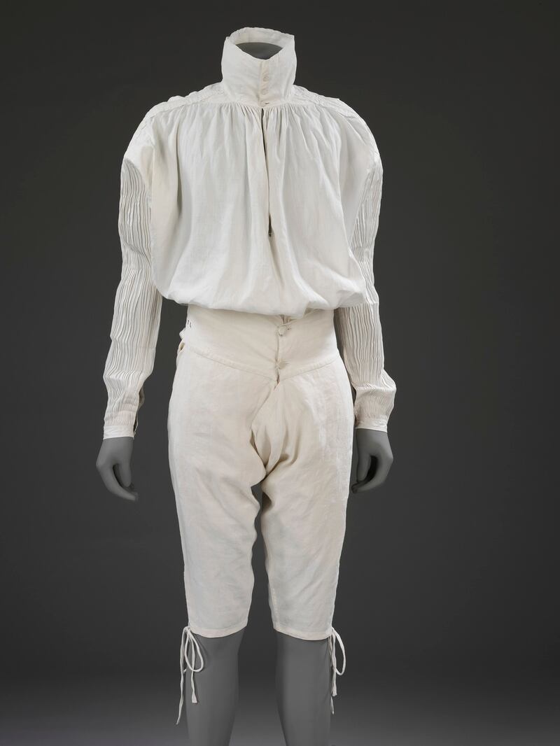 Male underwear is also included and the exhibition opens with many well preserved examples, such as a white linen shirt and drawers and handsome white shirts from the Georgian period, when it was considered bad manners to expose the sleeves, but displaying freshly laundered lace cuffs with a decorative shirt front demonstrated the wearer’s status and privilege.