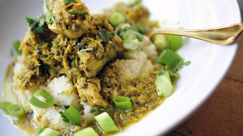 But it is meat, not vegetables, that is the star of the two Asian recipes here. The chicken curry is a leaner, much more fragrant version of the classic oh-so-creamy green curry. The key is to blitz the paste until it is as smooth as you can get it, as lemongrass can often be a bit woody. I accompanied it this time with no-carb “rice”, made by blitzing a whole head of cauliflower to breadcrumb consistency, then cooking it with a little butter water with a lid on for about five minutes. Then drain and you can season and keep warm.