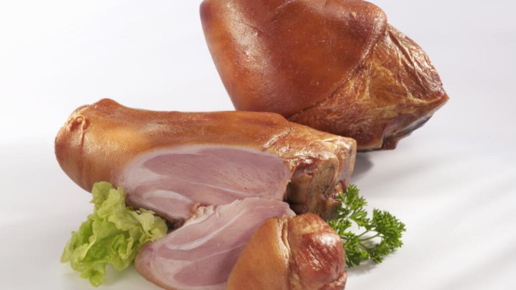 Once a ham hock has been slowly cooked and flaked from the bone, it can be used in a multiplicity of ways: added last minute to a mushroom soup; layered with some nice Knockdrinna cheese and caramelised onions for a beautiful lunchtime sandwich; to a new potato salad with some gherkins and lovage; or folded into a lovely early autumnal stew.