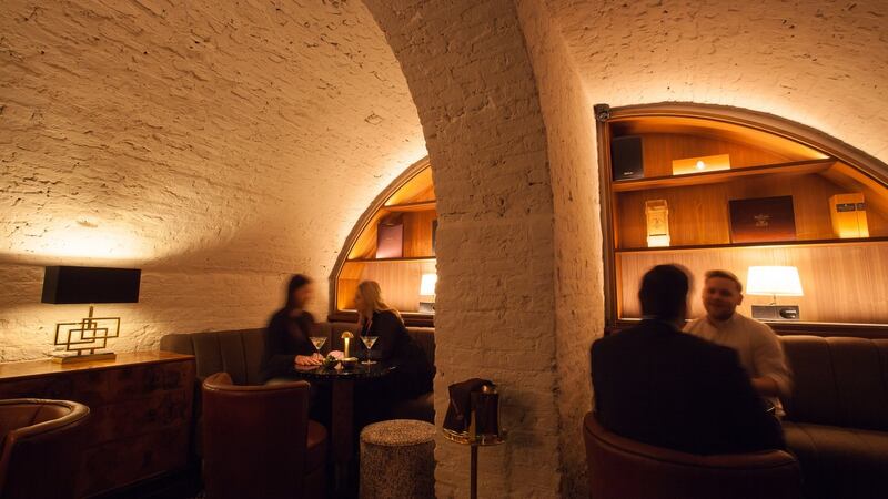 Yet venture down the stairs of 9 Below, a concept bar in the basement of the Hibernian Club, and it feels like entering a different country. A calming waft of Jo Malone English Pear & Freesia greets clients in the hallway. In the four rooms of the bar, there are accents of luxuriant brass, art deco crystal and walnut throughout; the work of interior designers O’Donnell O’Neill (House, 37 Dawson Street, Roberta’s).